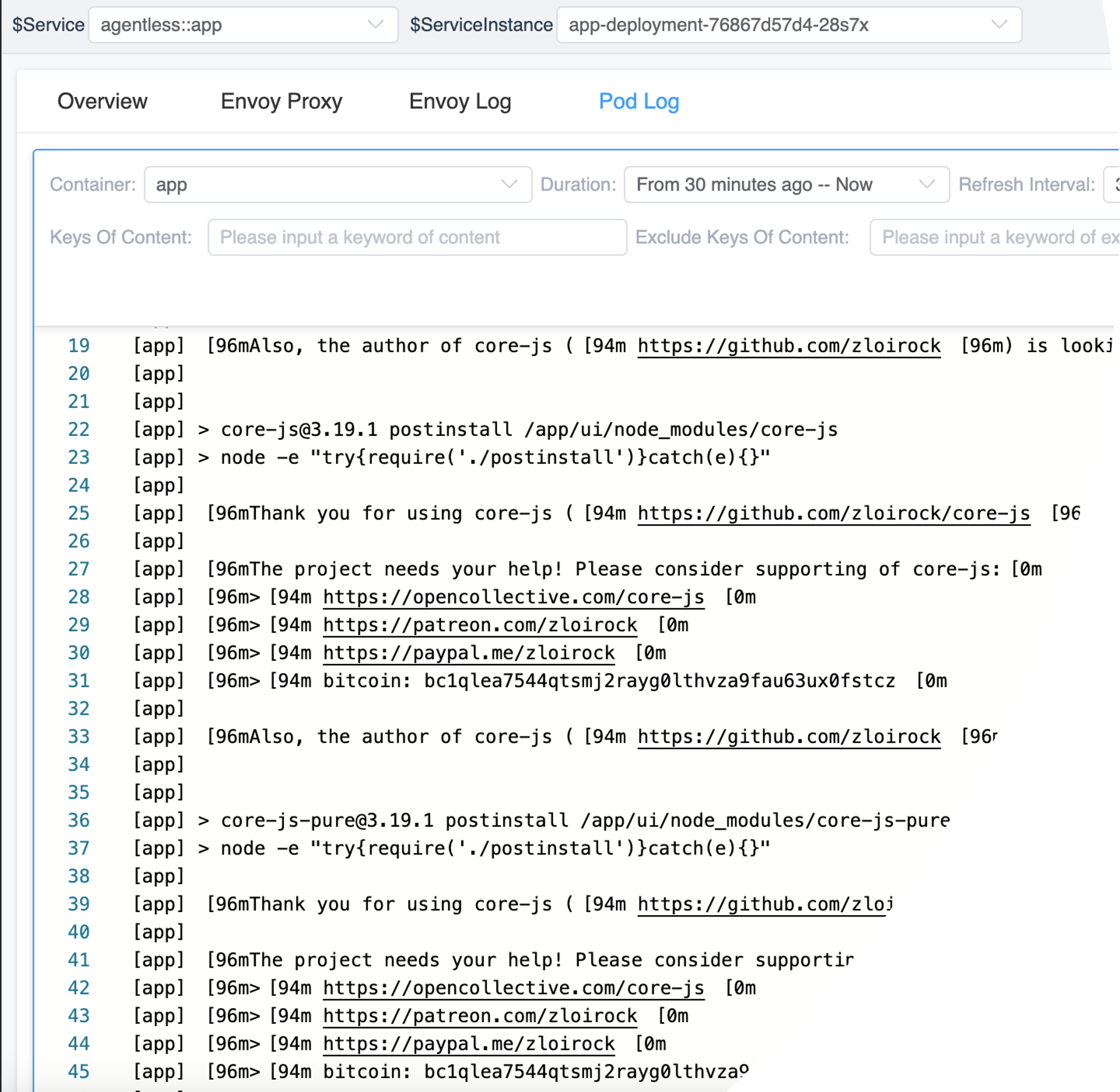 2. On-demand logs are provided first time in skywalking for all mesh services and k8s deployment as a zero cost log solution