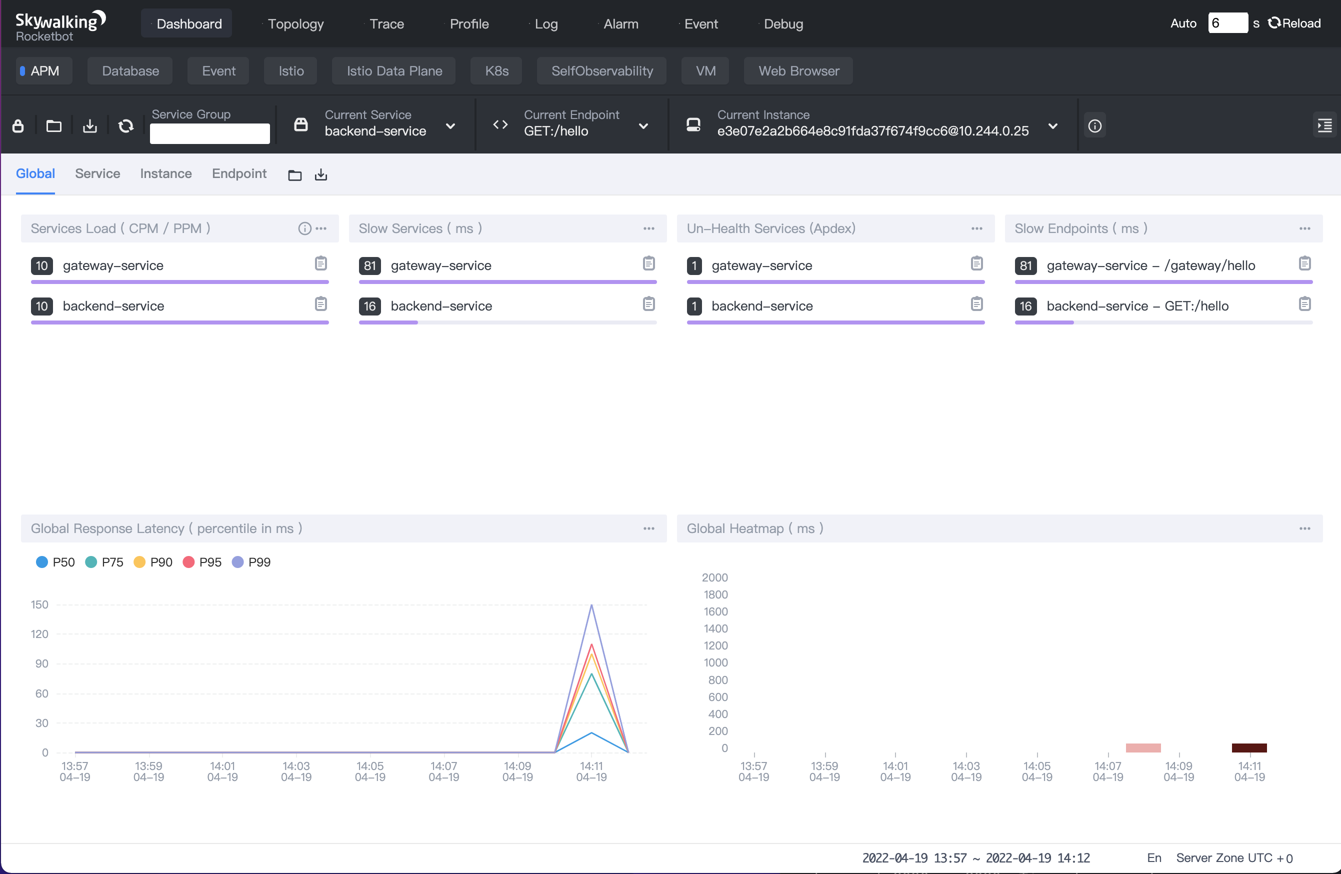 backend-service应用服务的 trace 信息。
